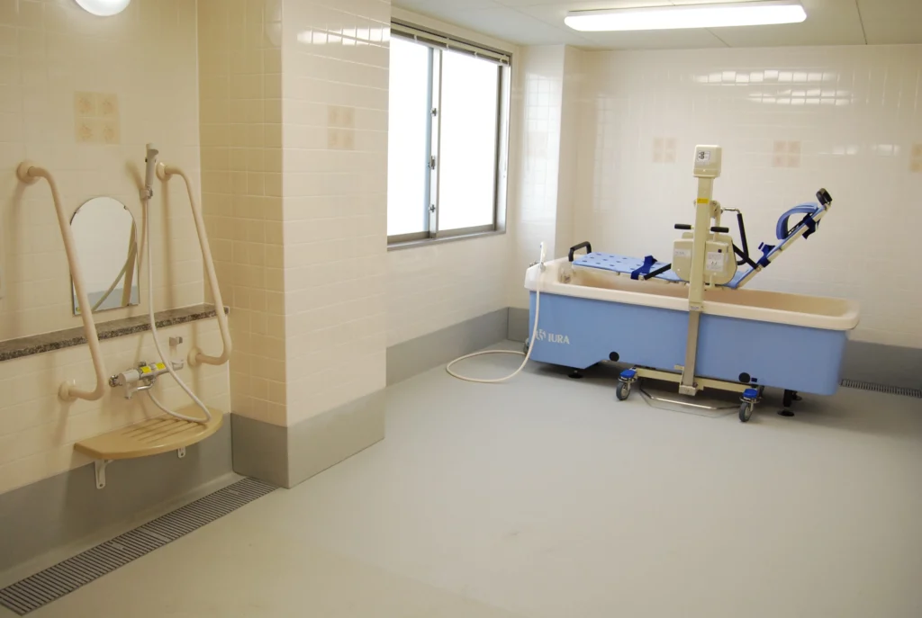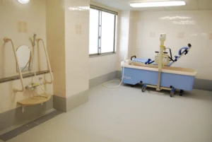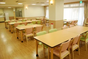 共用施設・設備 食堂兼機能訓練室、浴室(一般浴・機械浴・個浴)、ヘルパーステーション、健康管理室、談話コーナー、理容室、相談室、事務室、洗濯室、トイレ、エレベーター