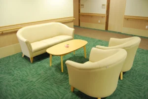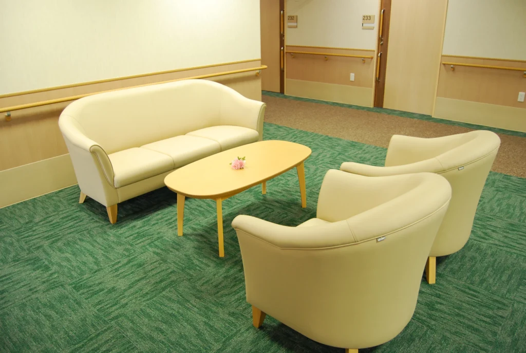圏央道・狭山日高ICからのアクセスが良く、来館者用駐車場も完備で車での面会に便利な施設です。茶畑や双柳小学校が隣接するのどかな環境。2階建ての館内は天井が高く、廊下も広々としており、日当たりの良い居室は、窓を開けると小学校の子どもたちの元気な声が聞こえてきます。