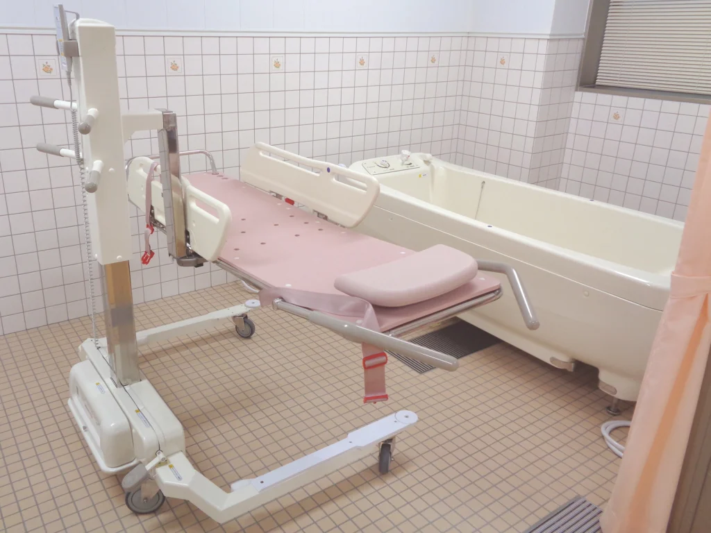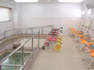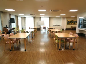 食堂兼機能訓練室、浴室(一般浴・機械浴・個浴)、ヘルパー室、健康管理室、談話コーナー、理容室、相談室、事務室、洗濯室、トイレ、エレベーター |