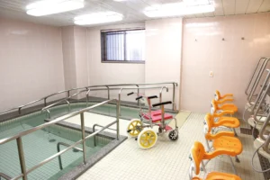 共用施設・設備 食堂、浴室(一般浴・機械浴・個浴)、ヘルパー室、健康管理室、談話コーナー、理容室、事務室、洗濯室、トイレ、エレベーター