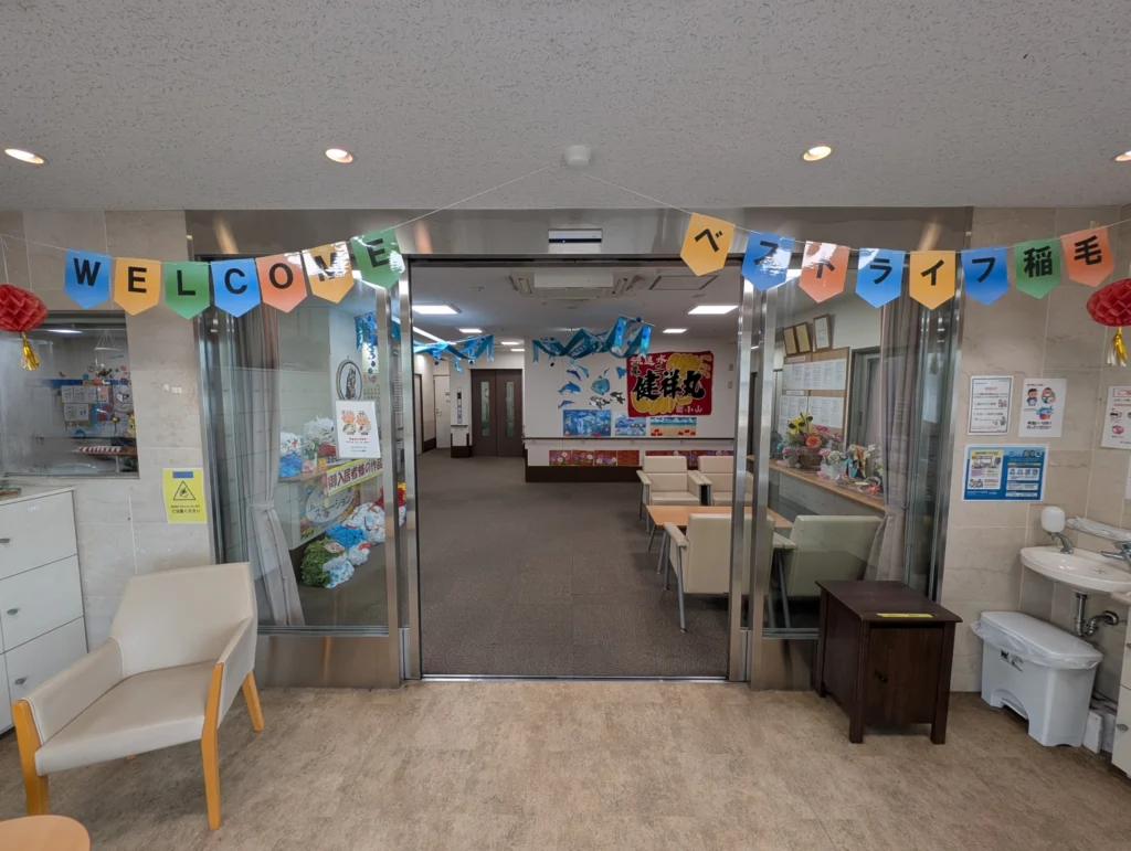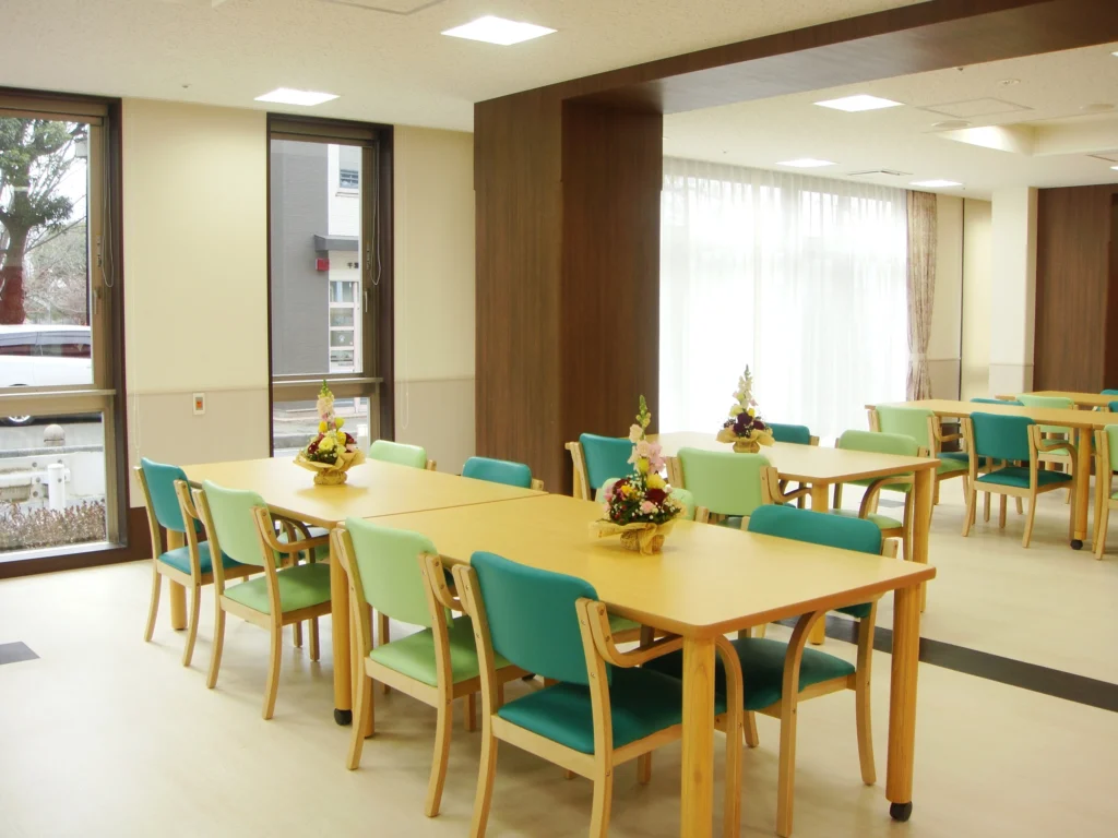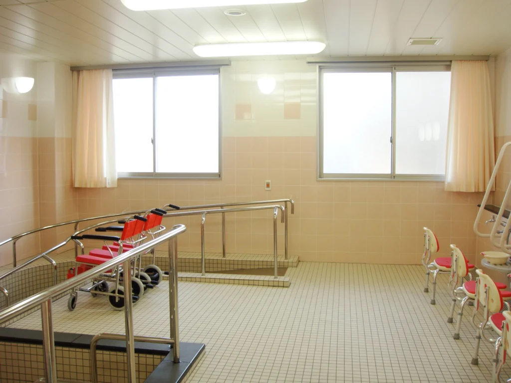 食堂兼機能訓練室、浴室(一般浴・機械浴・個浴)、ヘルパーステーション、健康管理室、談話コーナー、理美容室、相談室、事務室、洗濯室、トイレ、エレベーター |