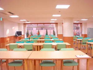 食堂、浴室(一般浴・機械浴・個浴)、ヘルパーステーション、健康管理室、機能訓練コーナー、談話コーナー、理容室、相談室、事務室、洗濯室、トイレ、エレベーター |