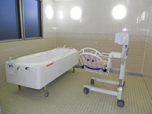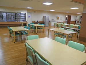 食堂、浴室(一般浴・機械浴・個浴)、ヘルパー室、健康管理室、談話コーナー、理容室、事務室、洗濯室、トイレ、エレベーター |