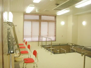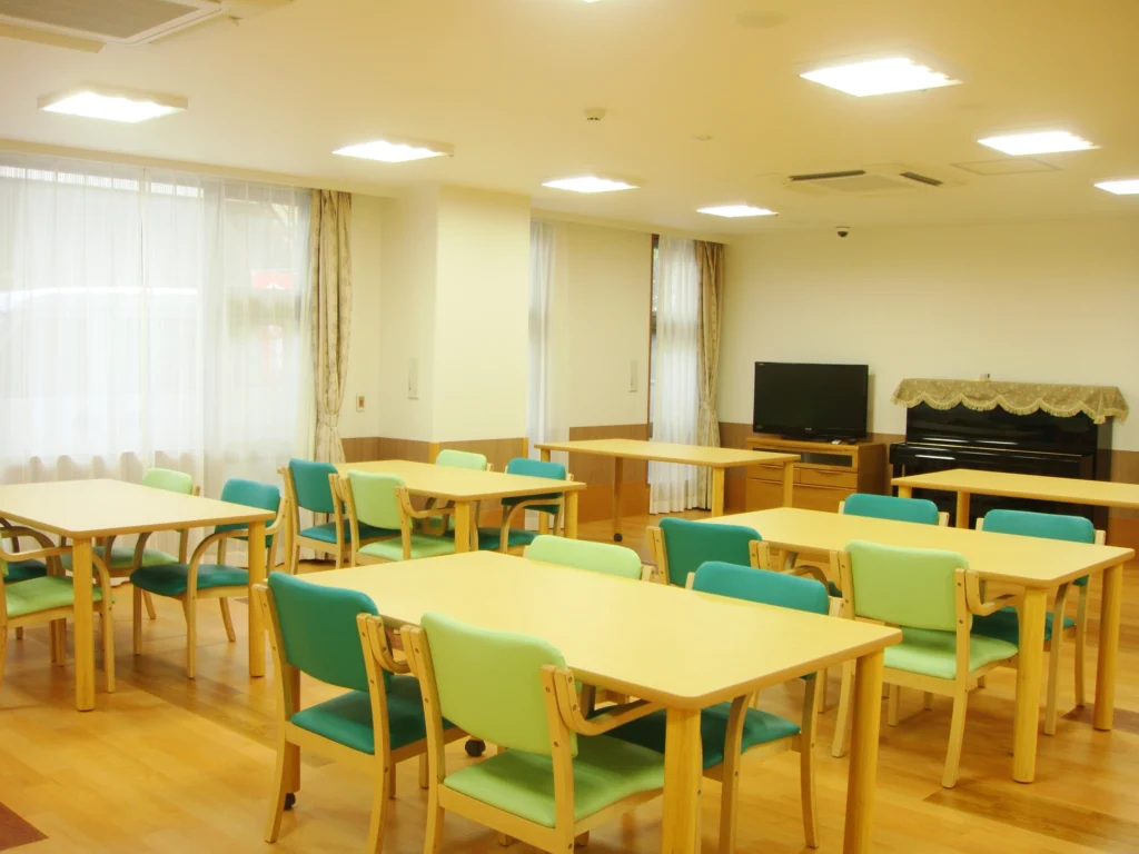 共用施設・設備 食堂、浴室(一般浴・機械浴)、ヘルパー室、健康管理室、機能訓練コーナー兼談話コーナー、談話コーナー、理美容室、生活相談室、事務室、洗濯室、トイレ、エレベーター