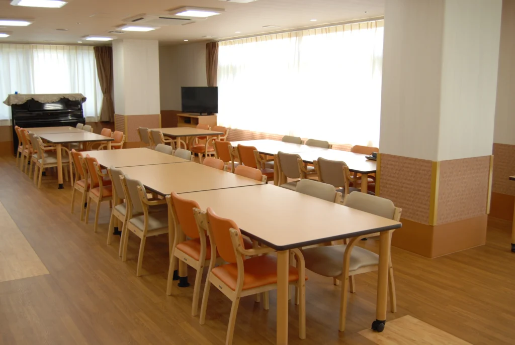 食堂、浴室(一般浴・機械浴)、ヘルパーステーション、健康管理室、談話コーナー、理美容室、相談室、事務室、洗濯室、トイレ、エレベーター |
