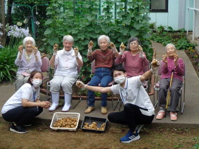 ご入居者様、職員ともに笑顔が絶えない、アットホームな明るい施設です。施設中庭にはフラワーガーデンを配しており、施設内にいながら季節を感じられるほか、「芋ほり」は毎年恒例の行事です。近隣には聖光ヶ丘病院や名戸ヶ谷病院もあります。