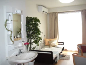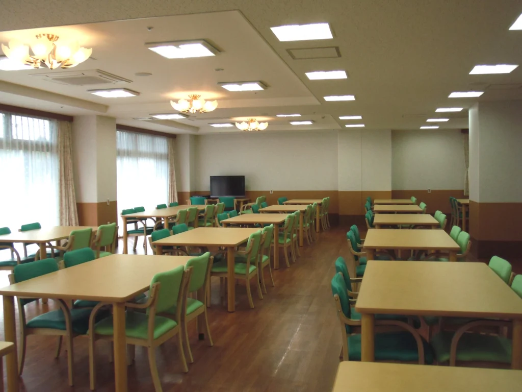 食堂、浴室(一般浴・機械浴・個浴)、ヘルパー室、健康管理室、機能訓練コーナー、談話コーナー、理容室、相談室、事務室、洗濯室、トイレ、エレベーター |