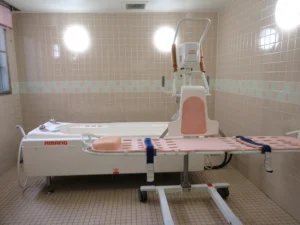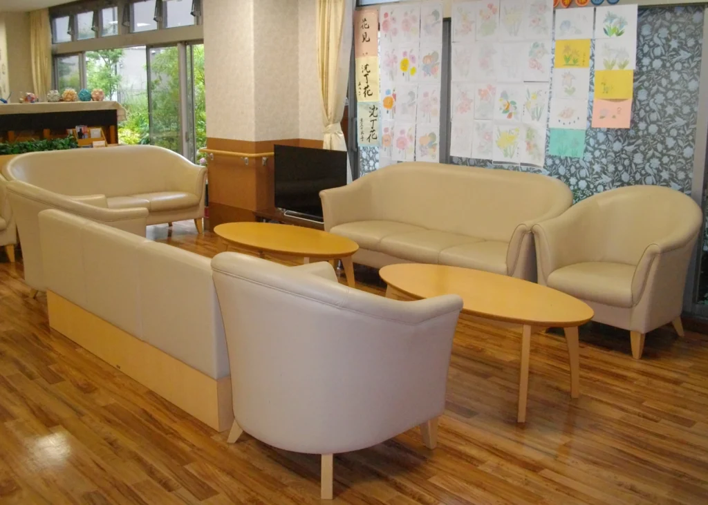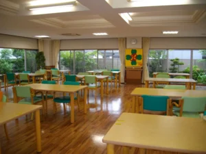 食堂兼機能訓練室、浴室(一般浴・機械浴・個浴)、ヘルパー室、健康管理室、談話コーナー、理容室、事務室、洗濯室、トイレ、エレベーター |