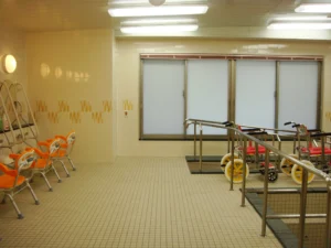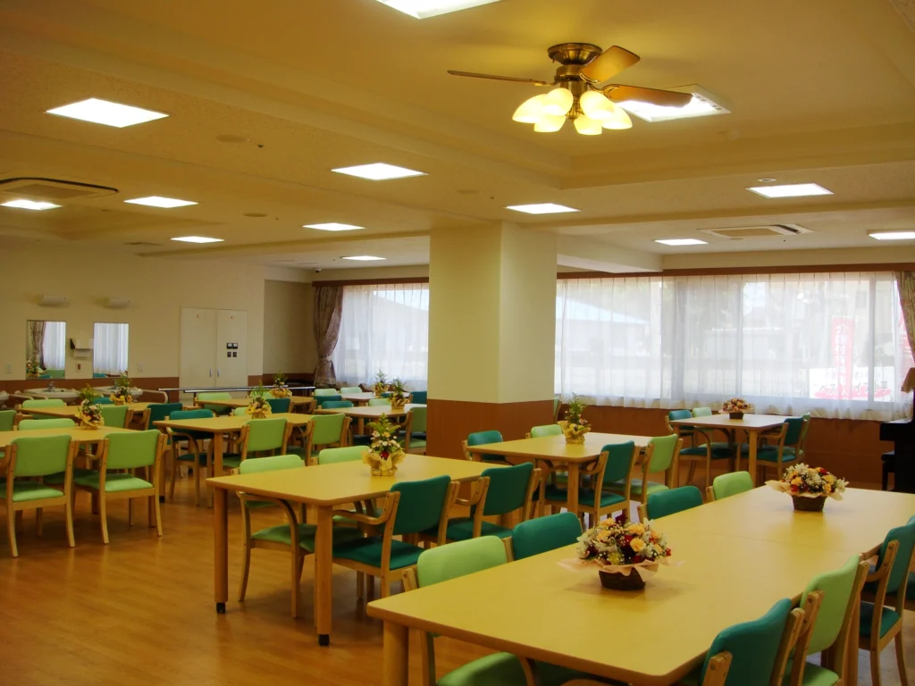 食堂兼機能訓練室、浴室(一般浴・機械浴・個浴)、ヘルパー室、健康管理室、談話コーナー、理容室、相談室、事務室、洗濯室、トイレ、エレベーター |
