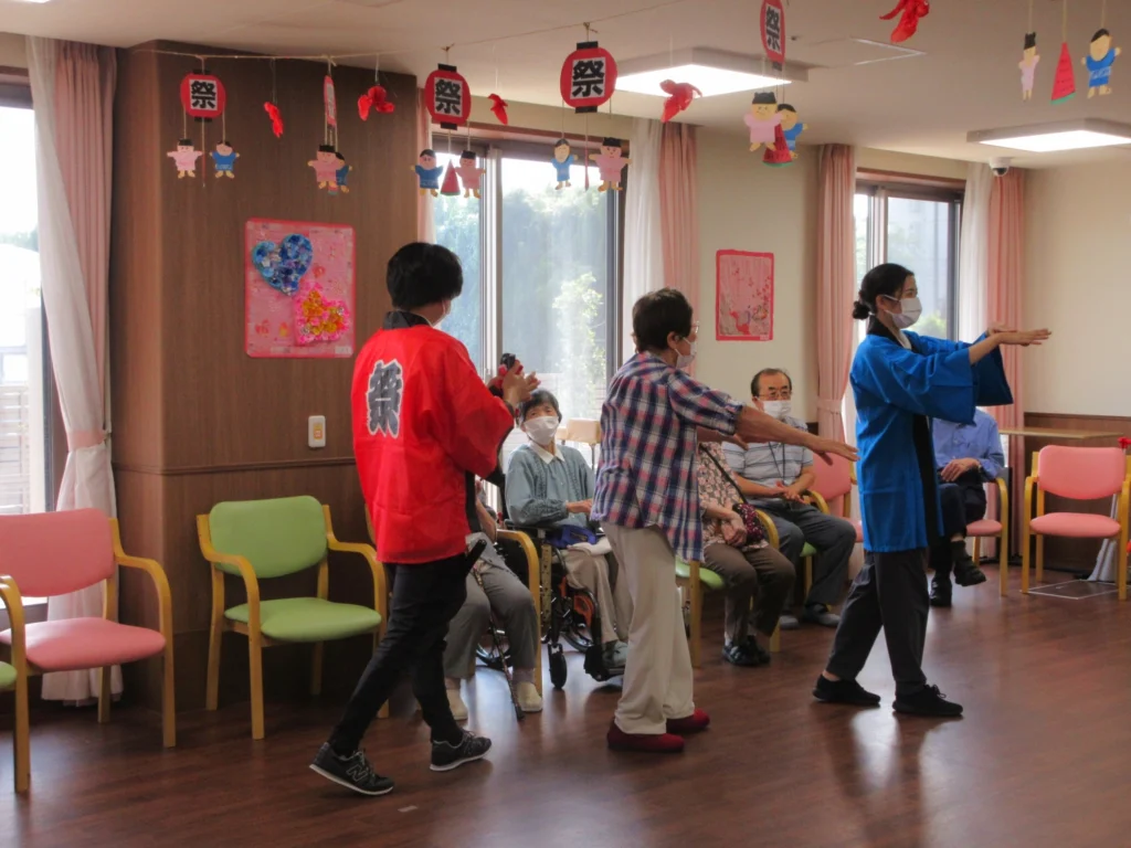 ご入居者様同士の仲が良くレクリエーションでは楽しく盛り上がっています。施設近隣にはスーパーやドラッグストアもあり大変便利です。春にはすぐ近くの小平団地の桜がきれいに咲き、ご家族様と桜を見にお散歩にお出掛けになることもあります。