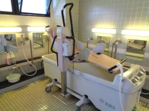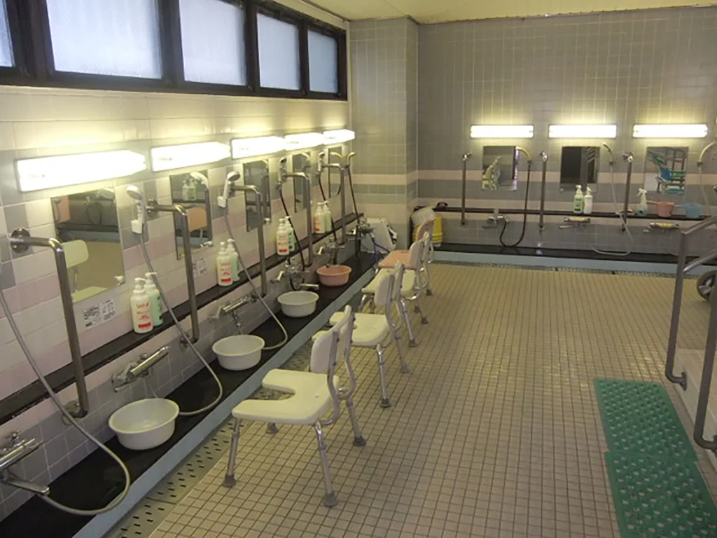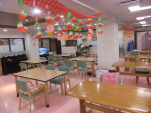 食堂、浴室(一般浴・機械浴)、ヘルパーステーション、健康管理室、機能訓練スペース、談話コーナー、多目的室、事務室、洗濯室、トイレ、エレベーター |