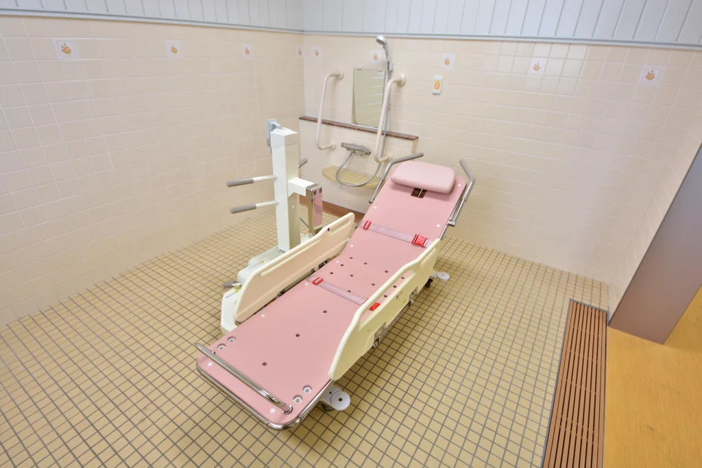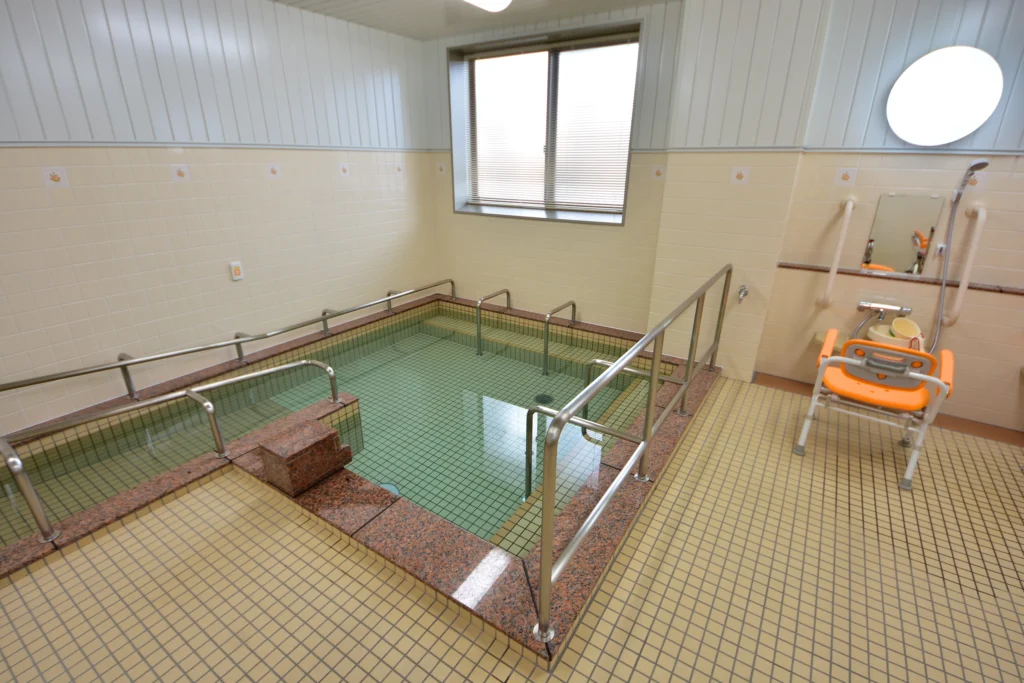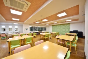 食堂兼機能訓練室、浴室(一般浴・機械浴・個浴)、ヘルパーステーション、健康管理室、談話コーナー、理容室、相談室、キッチン、事務室、洗濯室、トイレ、エレベーター |