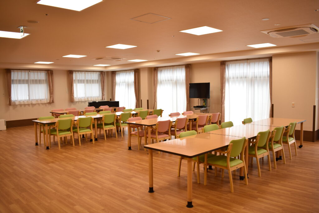 | 共用施設・設備 | 食堂兼機能訓練室、浴室(一般浴・機械浴・個浴)、ヘルパーステーション、健康管理室、談話コーナー、理容室、相談室、事務室、洗濯室、トイレ、エレベーター |