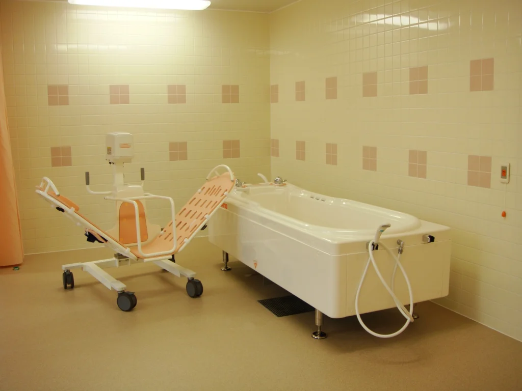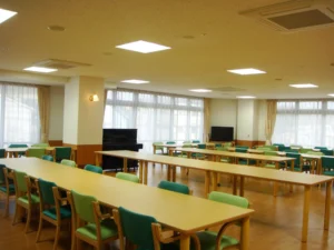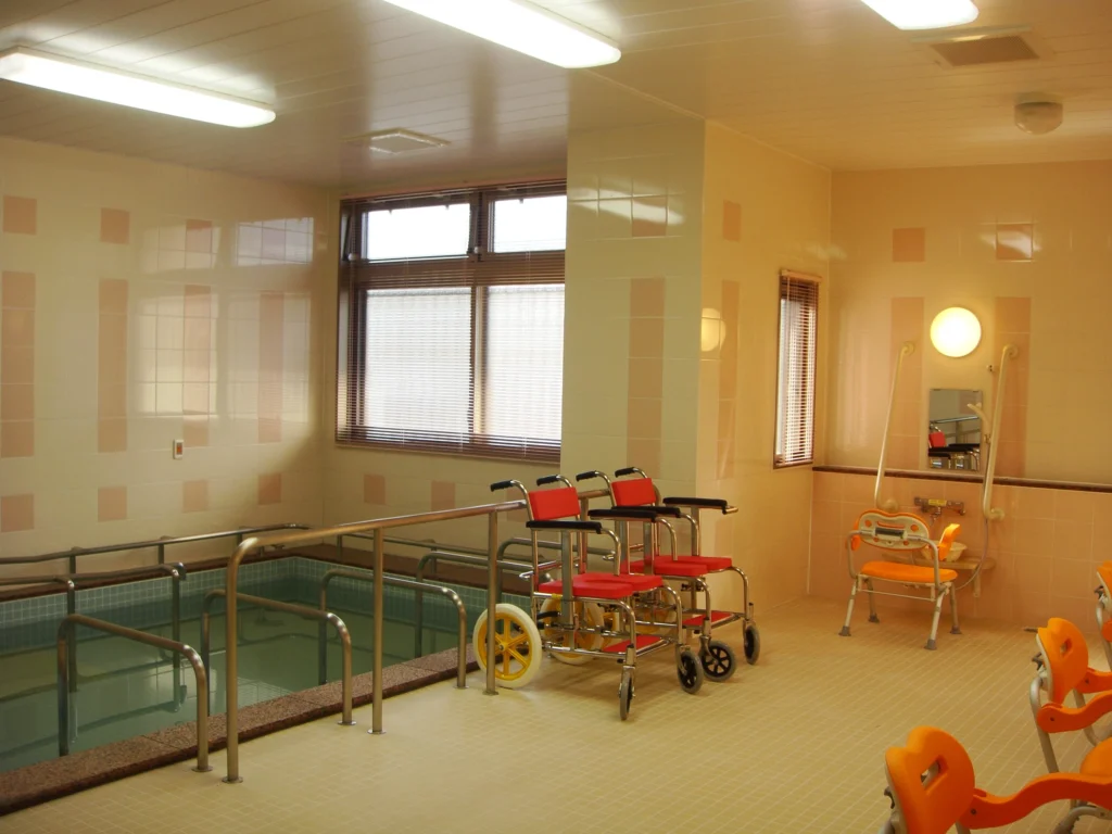 食堂、浴室(一般浴・機械浴・個浴)、ヘルパー室、健康管理室、機能訓練コーナー、談話コーナー、理美容室、相談室、事務室、洗濯室、トイレ、エレベーター |