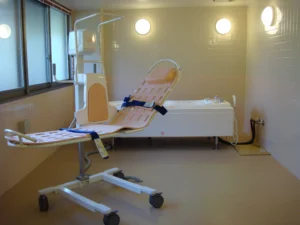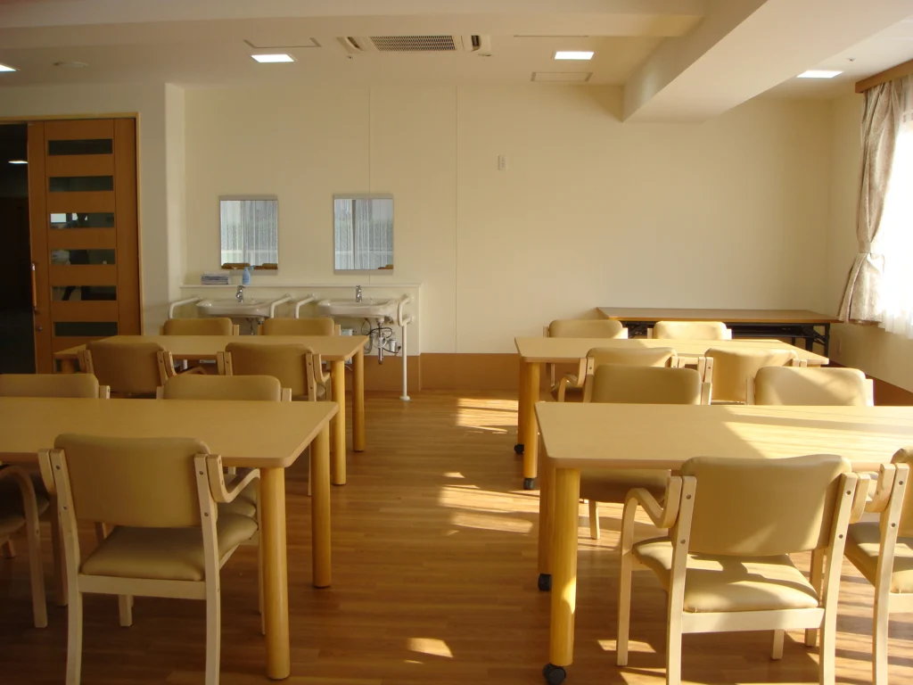食堂、浴室(一般浴・機械浴・個浴)、ヘルパーステーション、健康管理室、機能訓練コーナー、談話コーナー、理容室、相談室、事務室、洗濯室、トイレ、エレベーター |