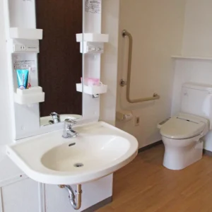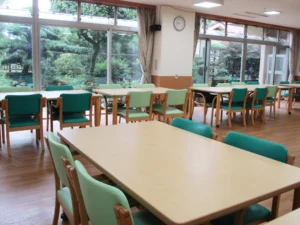 共用施設・設備 食堂、浴室(一般浴・機械浴・個浴)、ヘルパー室、健康管理室、機能訓練コーナー、談話コーナー、理容室、相談室、ゲストルーム、事務室、洗濯室、トイレ、エレベーター