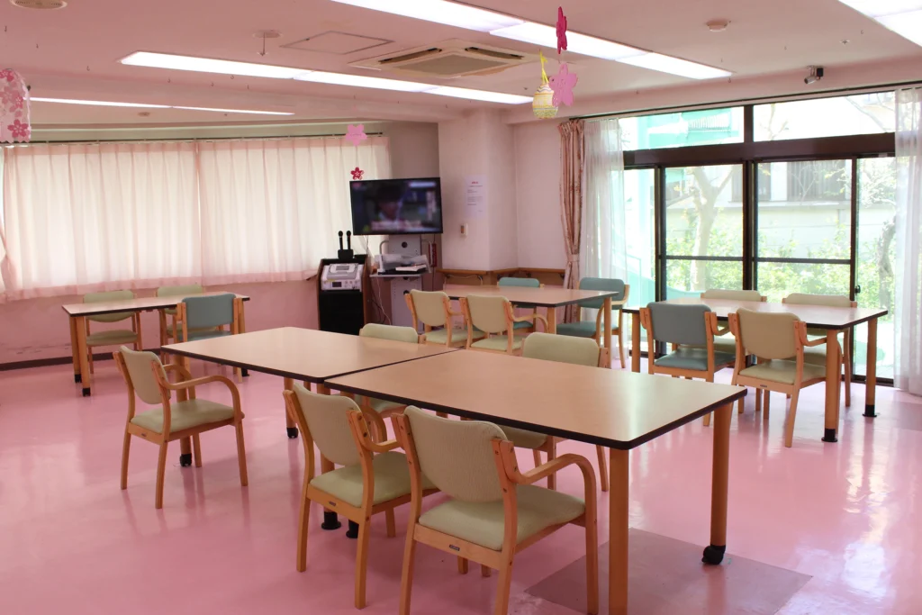 食堂、浴室(一般浴・機械浴)、ヘルパーステーション、健康管理室、機能訓練室、多目的ホール、事務室、洗濯室、トイレ、エレベーター |