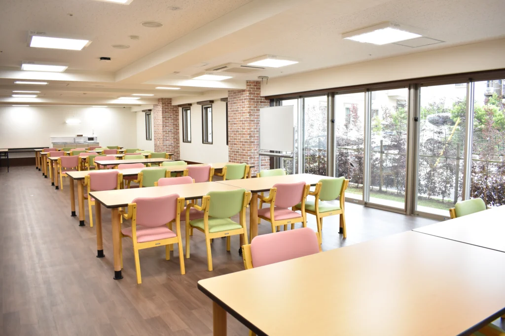 食堂、浴室(一般浴・機械浴・個浴)、ヘルパーステーション、ヘルパーコーナー、健康管理室、談話コーナー、理美容室、相談室、事務室、洗濯室、トイレ、エレベーター |