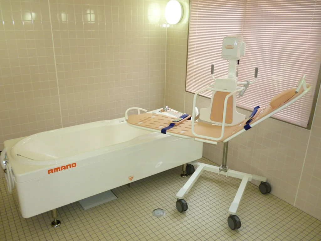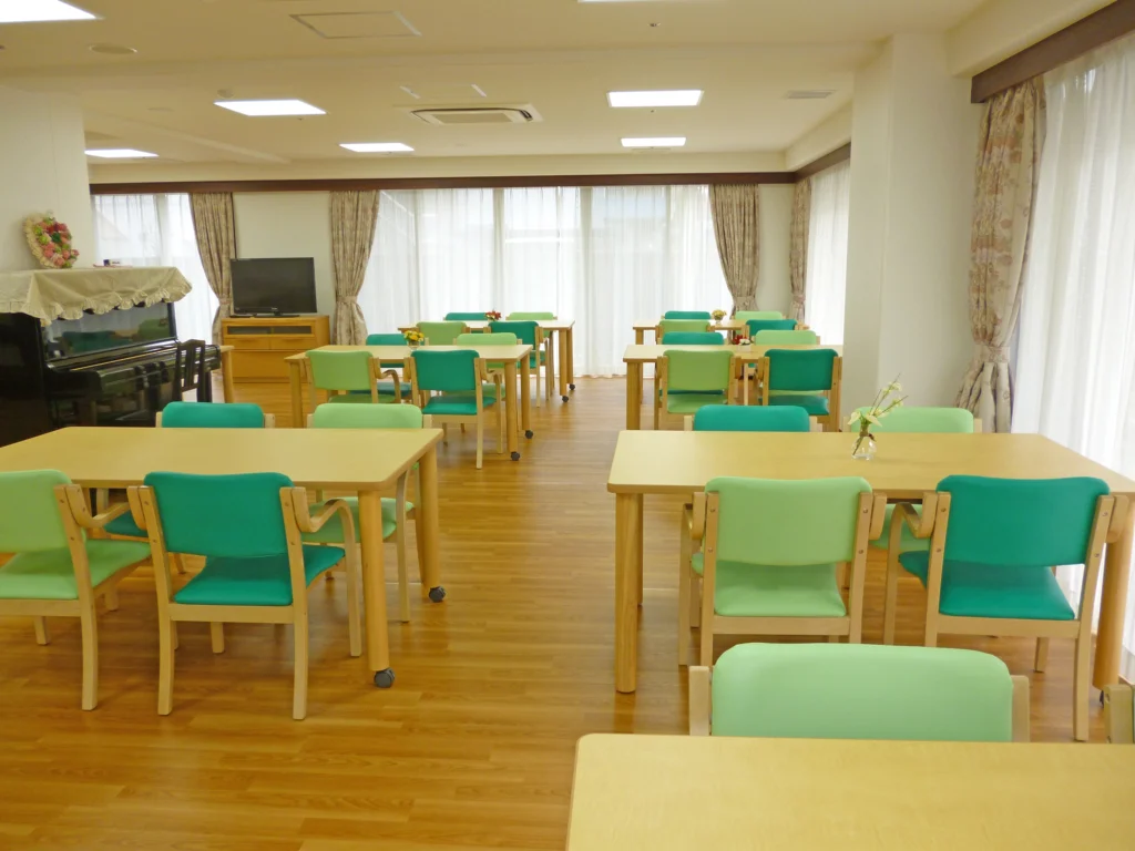 食堂兼機能訓練室、浴室(一般浴・機械浴・個浴)、ヘルパーステーション、健康管理室、談話コーナー、理容室、相談室、事務室、洗濯室、トイレ、エレベーター |