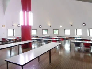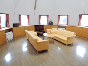 食堂、浴室(一般浴・機械浴)、ヘルパー室、機能訓練室兼一時介護室、談話室、シアタールーム、事務室、洗濯室、トイレ、エレベーター |