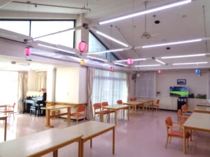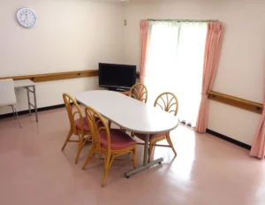 食堂、浴室(一般浴・機械浴)、ヘルパー室、健康管理室、機能訓練コーナー、談話室、事務室、洗濯室、トイレ、エレベーター |