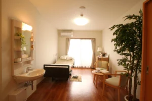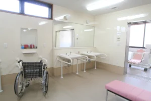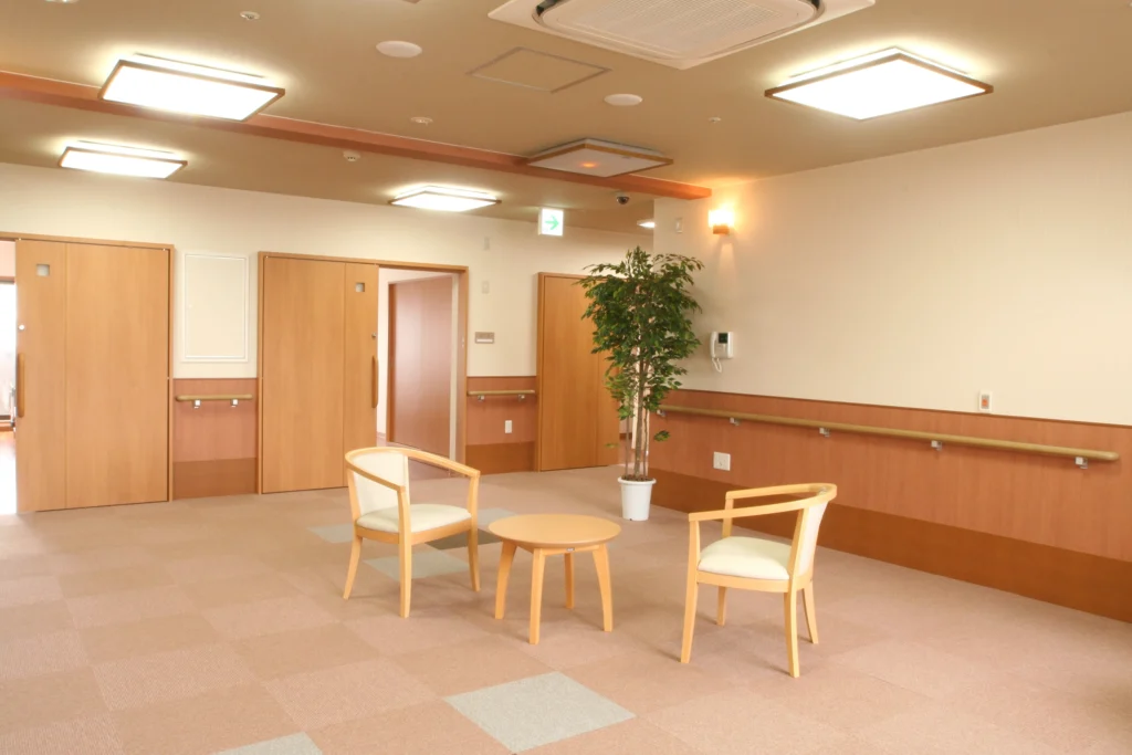 食堂兼機能訓練室、浴室(一般浴・機械浴・個浴)、ヘルパー室、健康管理室、談話コーナー、理美容室、相談室、事務室、洗濯室、トイレ、エレベーター |