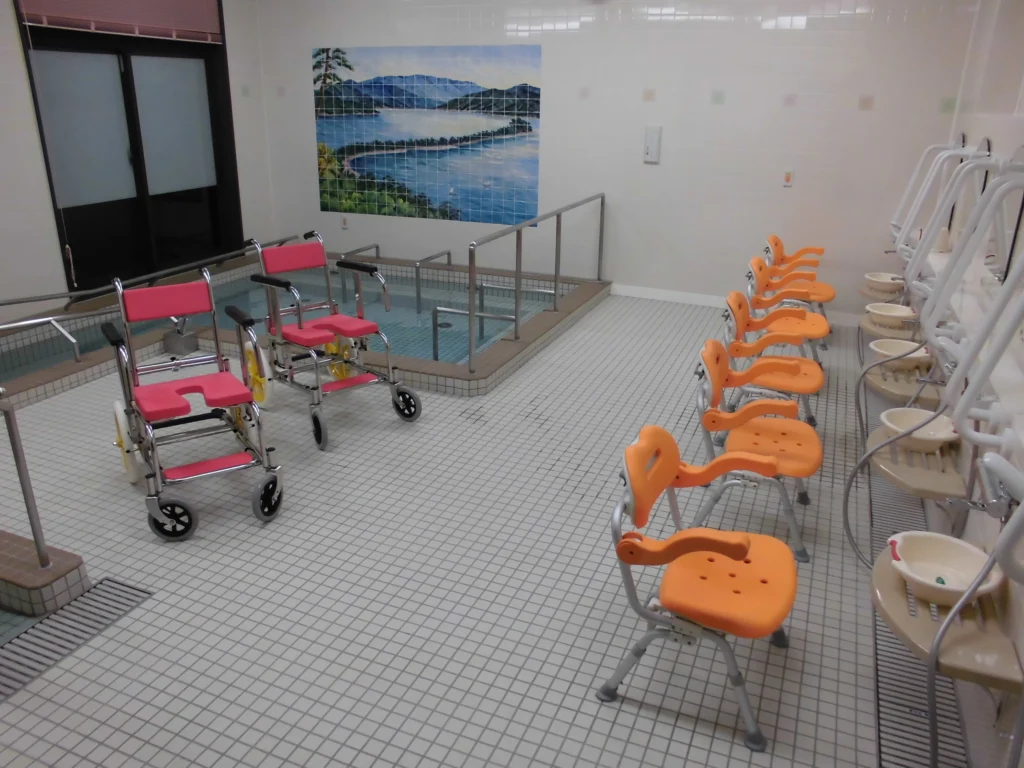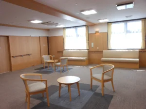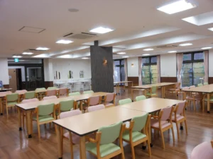 共用施設・設備 食堂、浴室(一般浴・機械浴・個浴)、ヘルパーステーション、健康管理室、談話コーナー、理美容室、事務室、洗濯室、トイレ、エレベーター