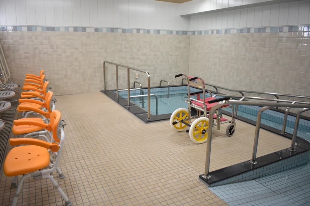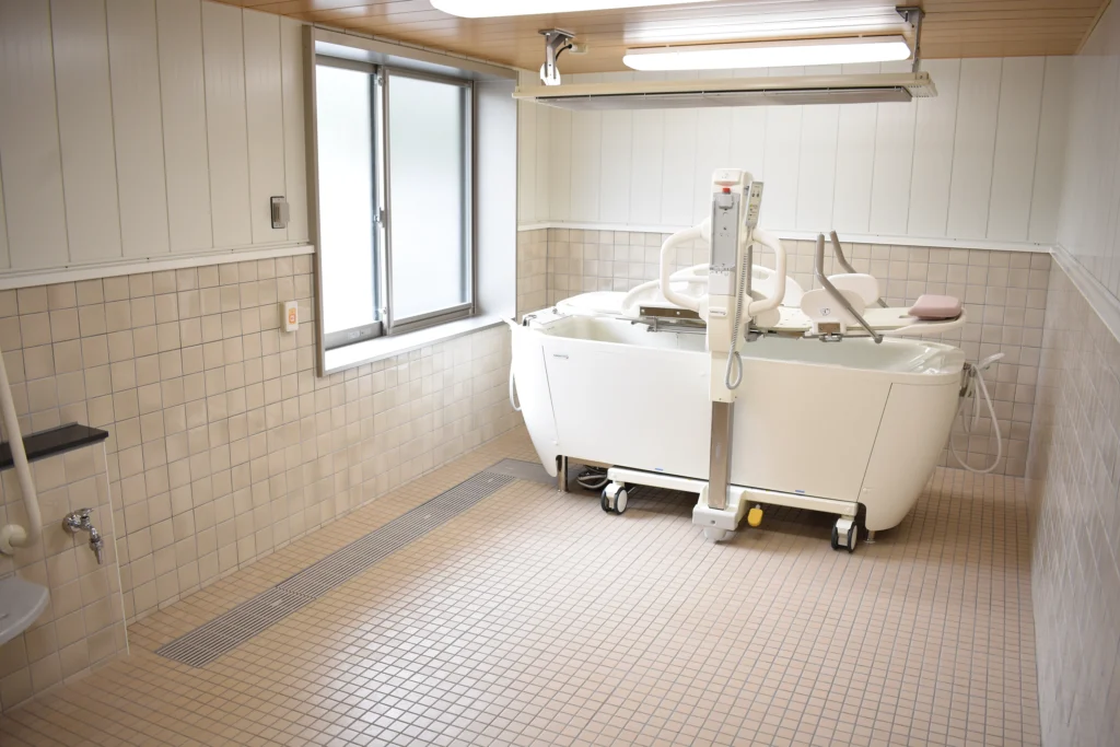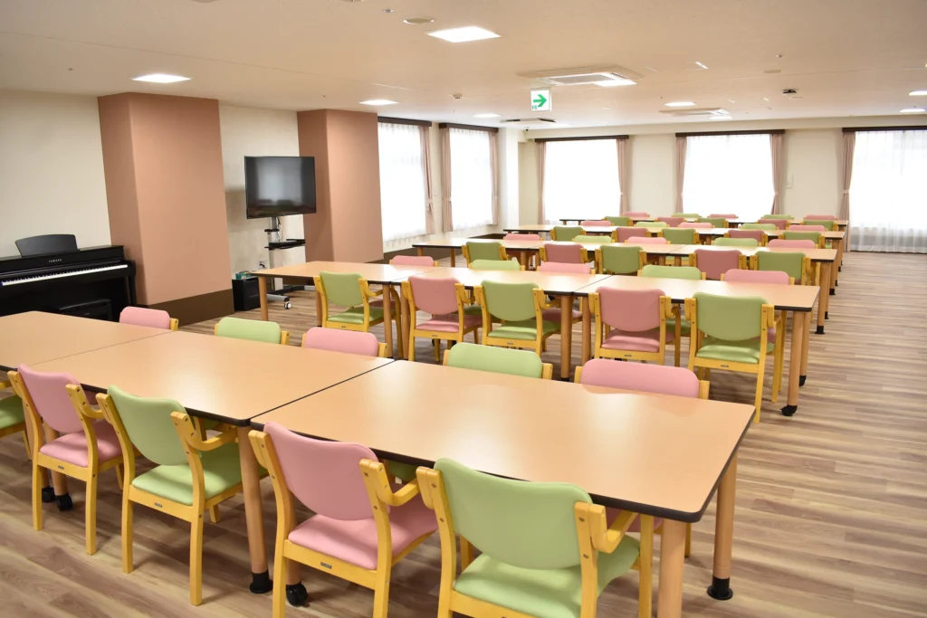 共用施設・設備 食堂兼機能訓練室、浴室(一般浴・機械浴・個浴)、ヘルパーステーション、健康管理室、談話コーナー、理美容室、相談室、ロビー、事務室、洗濯室、トイレ、エレベーター