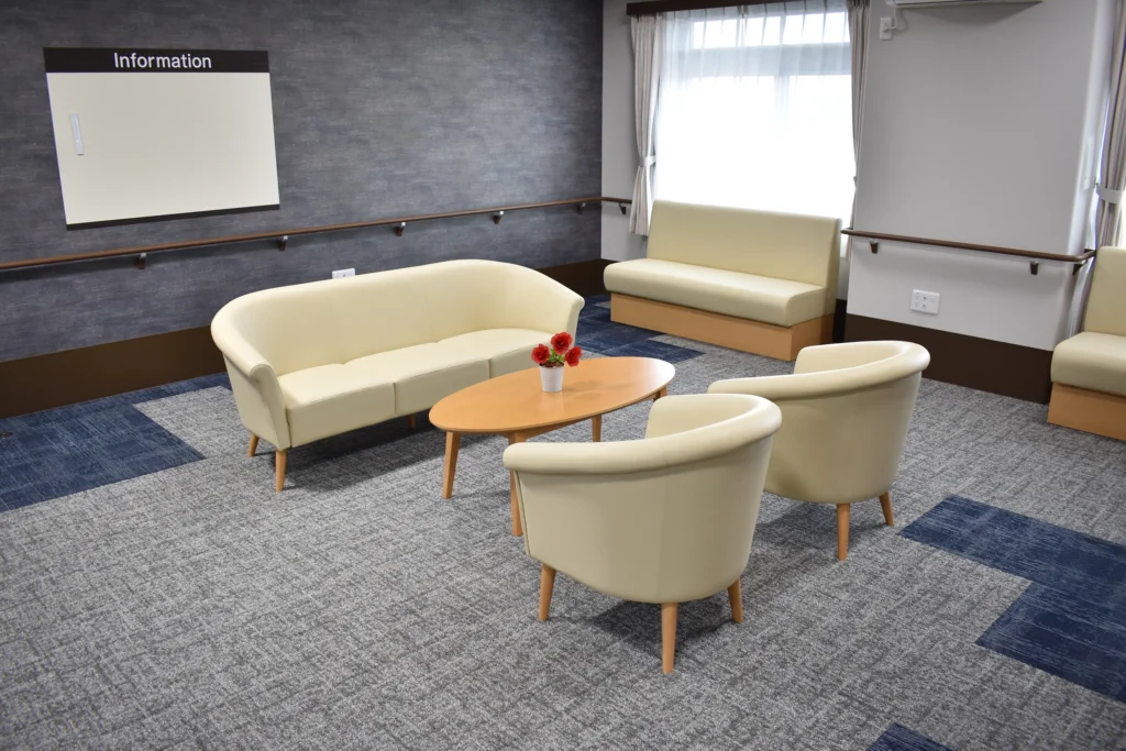 狭山市役所すぐ近く。少し高台に位置しており、一部居室からは奥武蔵の山々を望むことができます。施設西側には航空自衛隊入間基地があり、飛行機の離発着を間近に見られることも。ご家族の面会にも、買い物などのお出かけにも便利な立地です。