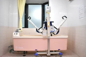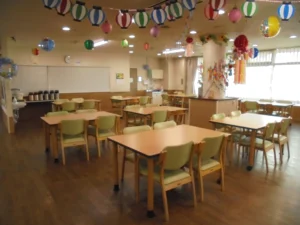 食堂、浴室(一般浴・機械浴・個浴)、ヘルパーステーション、健康管理室、機能訓練スペース兼多目的スペース、事務室、洗濯室、トイレ、エレベーター |