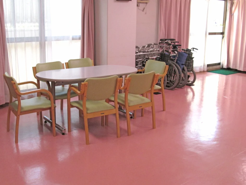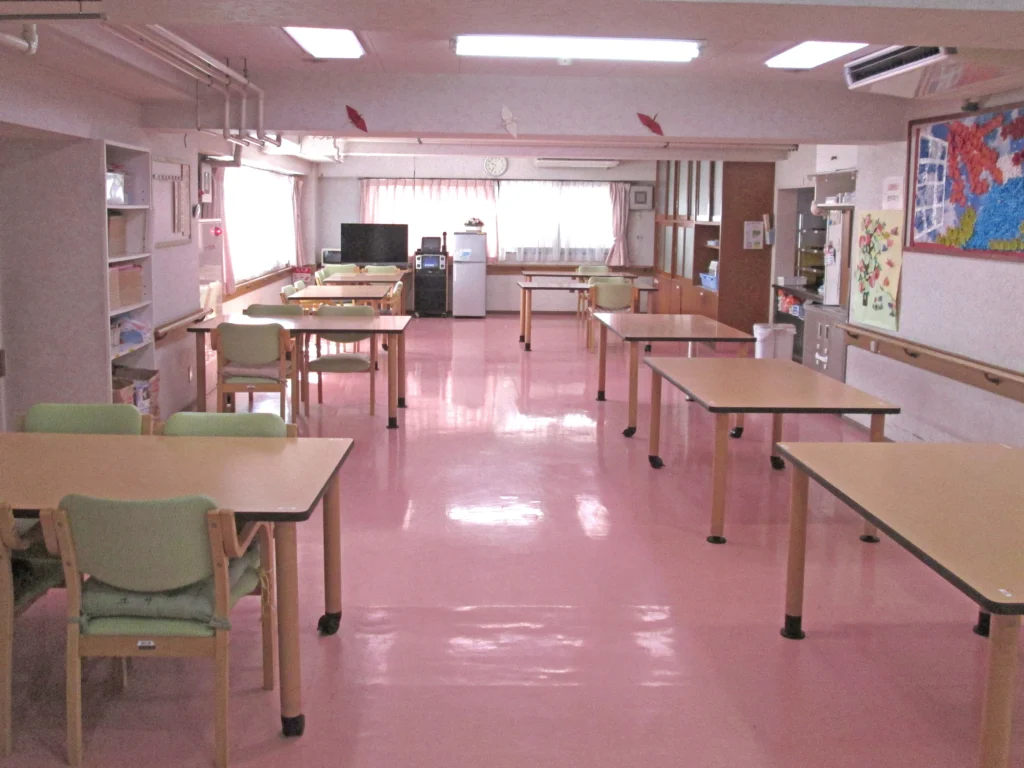 食堂、浴室(一般浴・機械浴)、ヘルパーコーナー、健康管理室、機能訓練室、多目的室、事務室、洗濯室、トイレ、エレベーター |