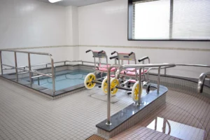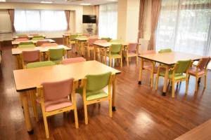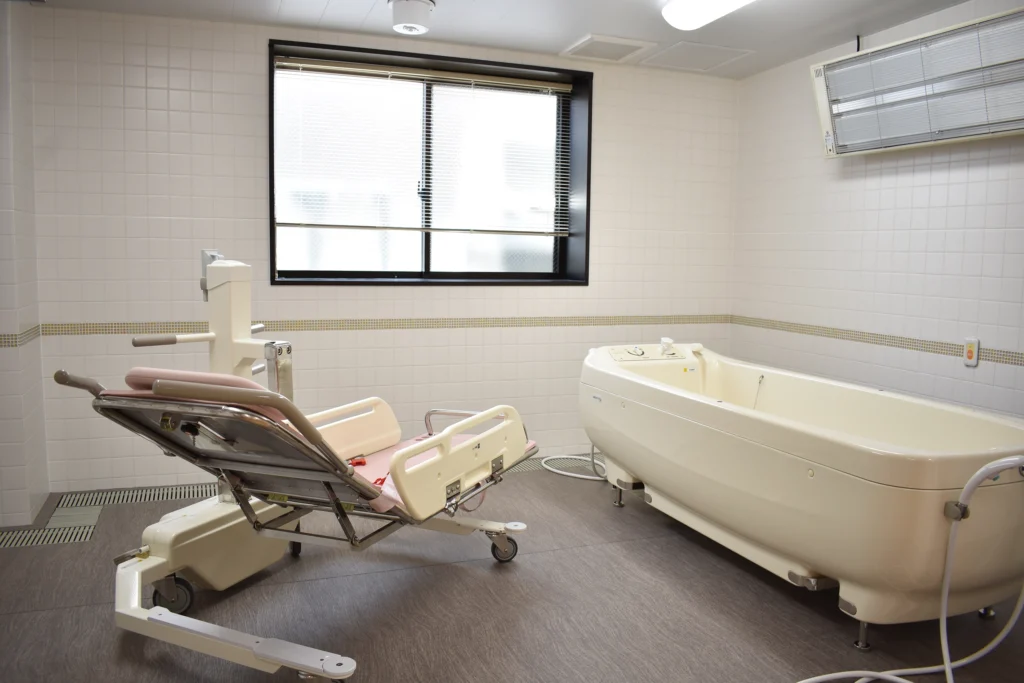 食堂、浴室(一般浴・機械浴)、ヘルパーステーション、健康管理室、談話コーナー、理容室、相談室、事務室、洗濯室、トイレ、エレベーター |