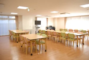 | 共用施設・設備 | 食堂、浴室(一般浴・機械浴・個浴)、ヘルパーステーション、健康管理室、機能訓練コーナー兼談話コーナー、理容室、相談室、事務室、洗濯室、トイレ、エレベーター |