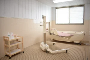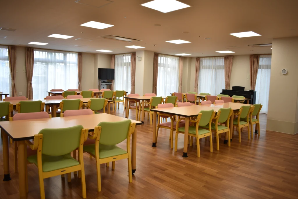 | 共用施設・設備 | 食堂兼機能訓練室、浴室(一般浴・機械浴・個浴)、ヘルパーステーション、健康管理室、談話コーナー、理容室、相談室、ファミリールーム、事務室、洗濯室、トイレ、エレベーター |