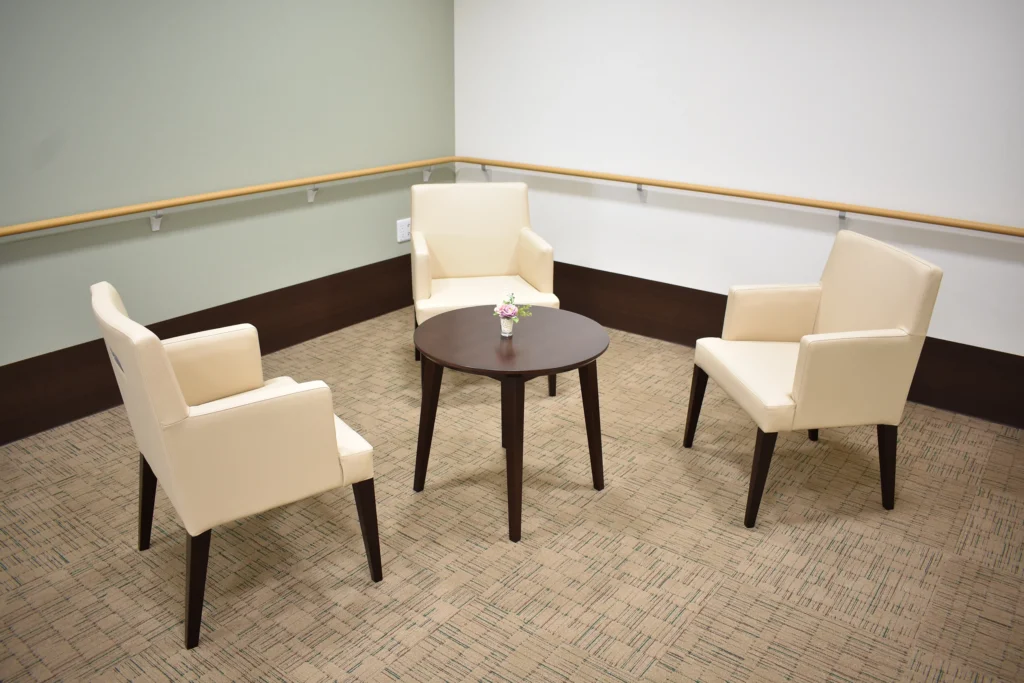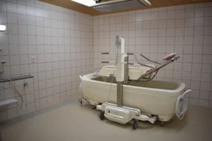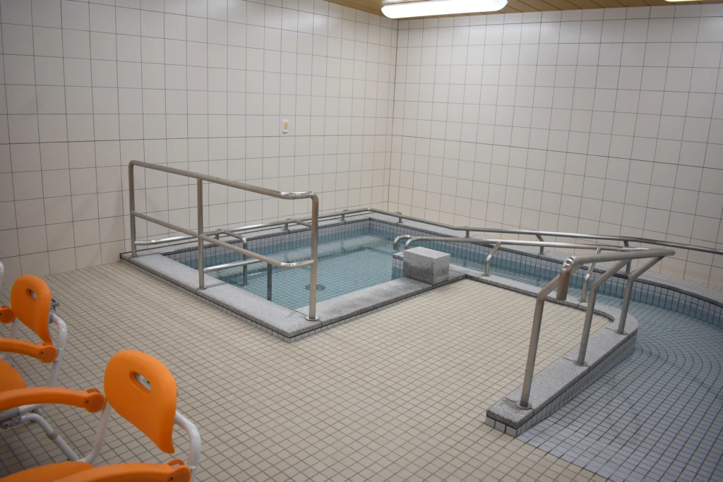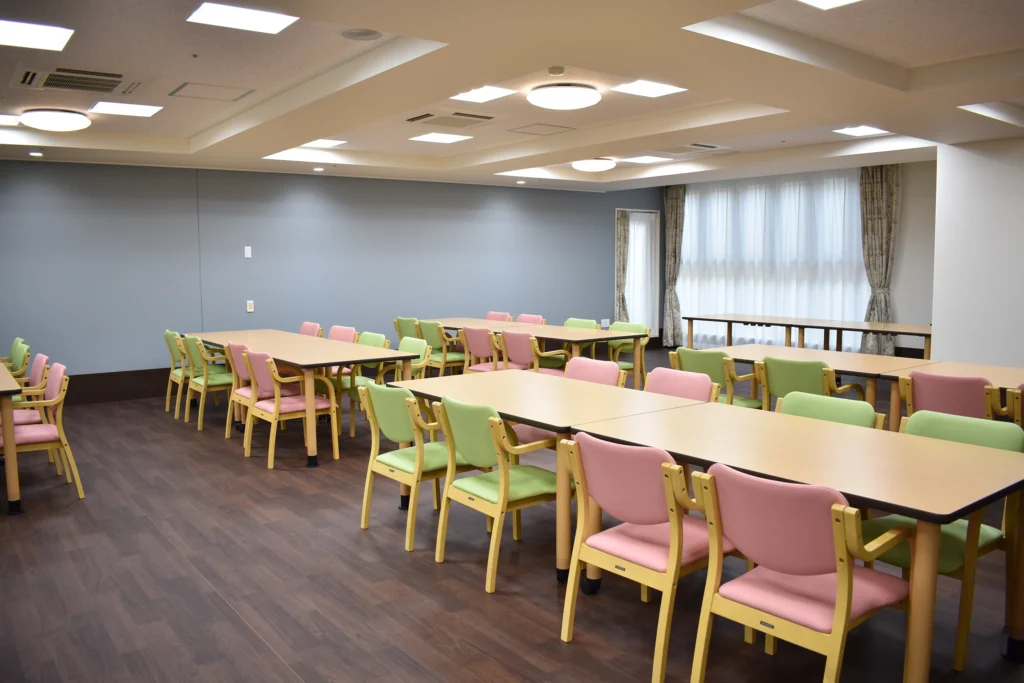食堂、浴室(一般浴・機械浴・個浴)、ヘルパーステーション、健康管理室、談話コーナー、理美容室、相談室、事務室、洗濯室、トイレ、エレベーター |