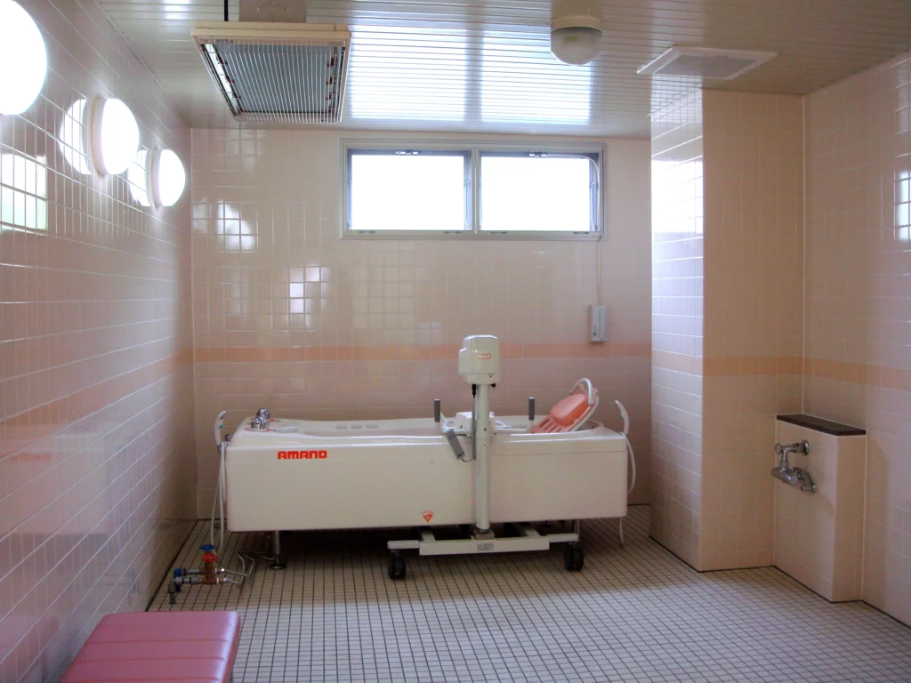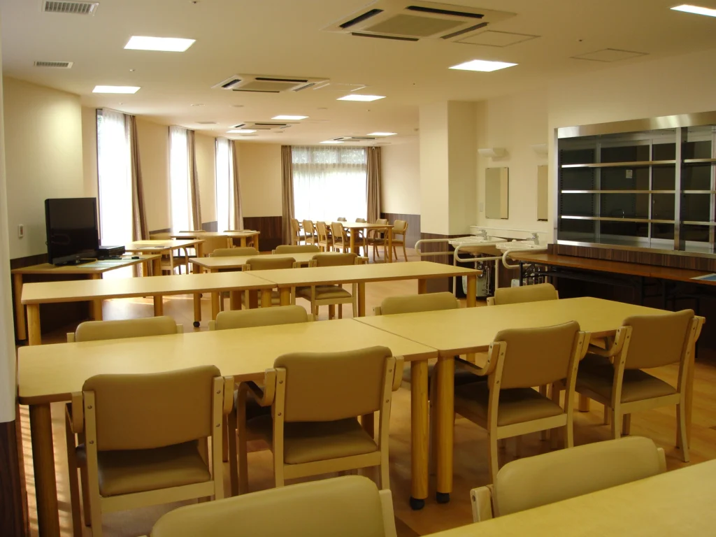 食堂、浴室(一般浴・機械浴)、ヘルパー室、健康管理室、機能訓練スペース、談話室、理容室、生活相談室、事務室、洗濯室、トイレ、エレベーター |