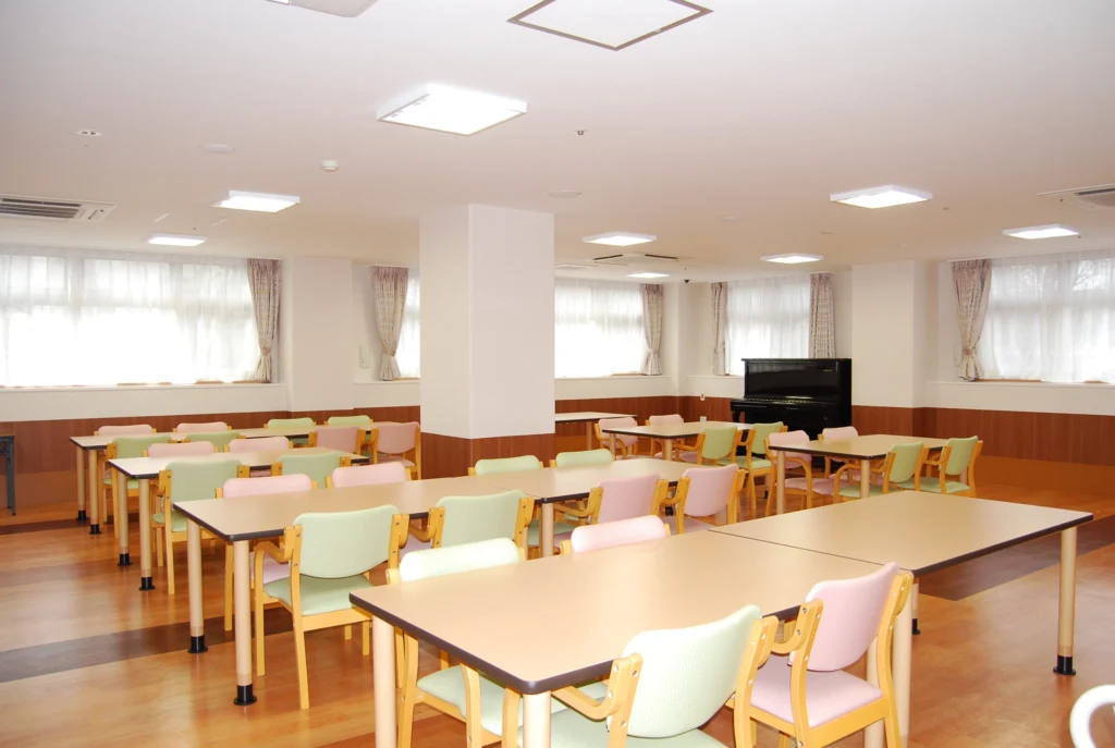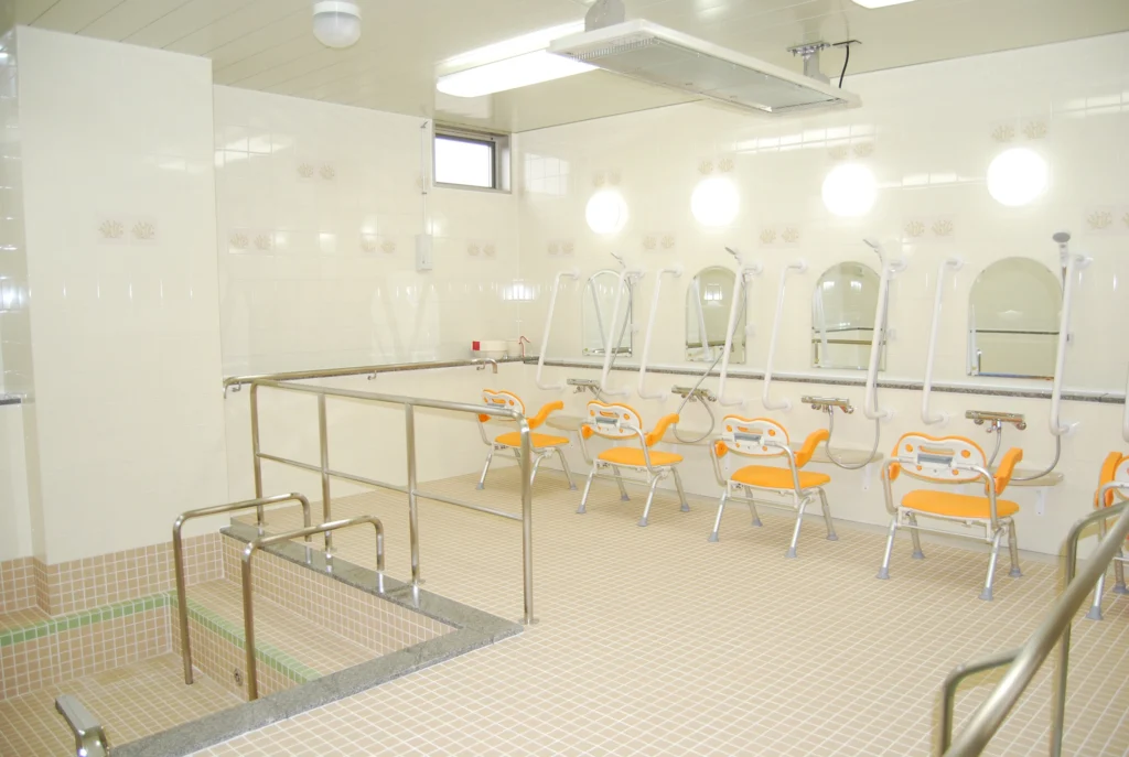 食堂兼機能訓練室、浴室(一般浴・機械浴)、ヘルパー室、健康管理室、談話コーナー、理美容室、相談室、事務室、洗濯室、トイレ、エレベーター |